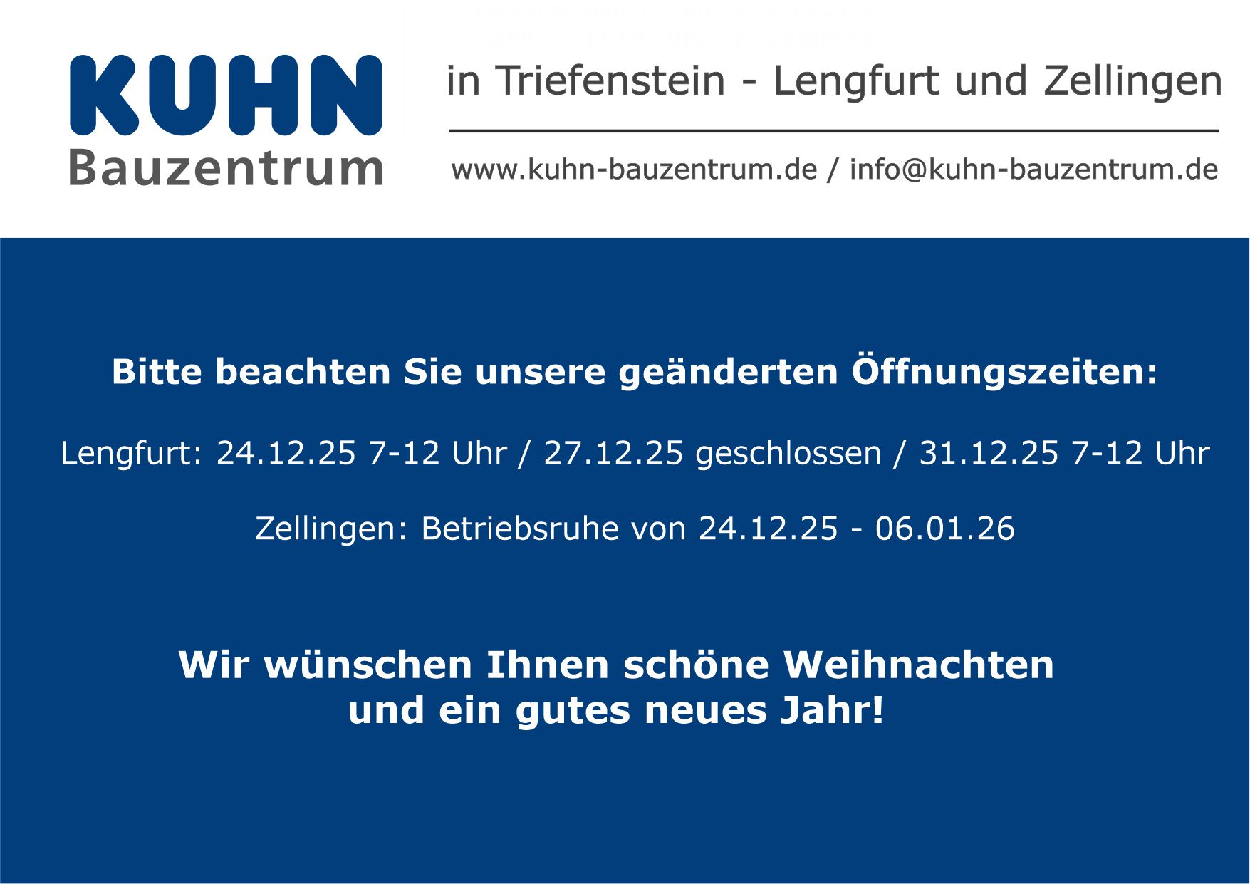 Lengfurt: 24.12.25 7-12 Uhr / 27.12.25 geschlossen / 31.12.25 7-12 Uhr
